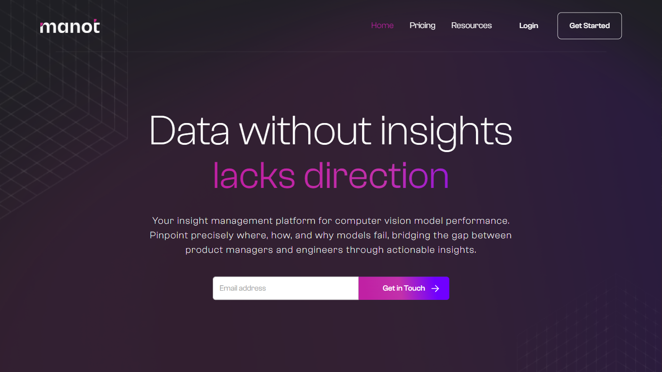Manot is a state-of-the-art Insight Management Platform designed to revolutionize the field of computer vision by offering precision-driven actionable insights. This platform specializes in detecting the weaknesses within computer vision models, identifying exactly where, how, and why these models may underperform. Manot is invaluable for product managers and engineers, allowing them to collaborate more effectively and bridge any communication gaps. The platform boasts an automated feedback loop, significantly enhancing model performance and aiming for cost-effective model refinement. With Manot, waiting for models to fail is a thing of the past—instead, users receive continuous, real-time data curation. Manot’s simple and intuitive user interface caters to both technical and non-technical users, ensuring that the benefits of advanced computer vision insights are accessible to a wider audience. Ultimately, Manot is dedicated to not only improving model accuracy but also positively impacting the bottom line of businesses leveraging computer vision technology.