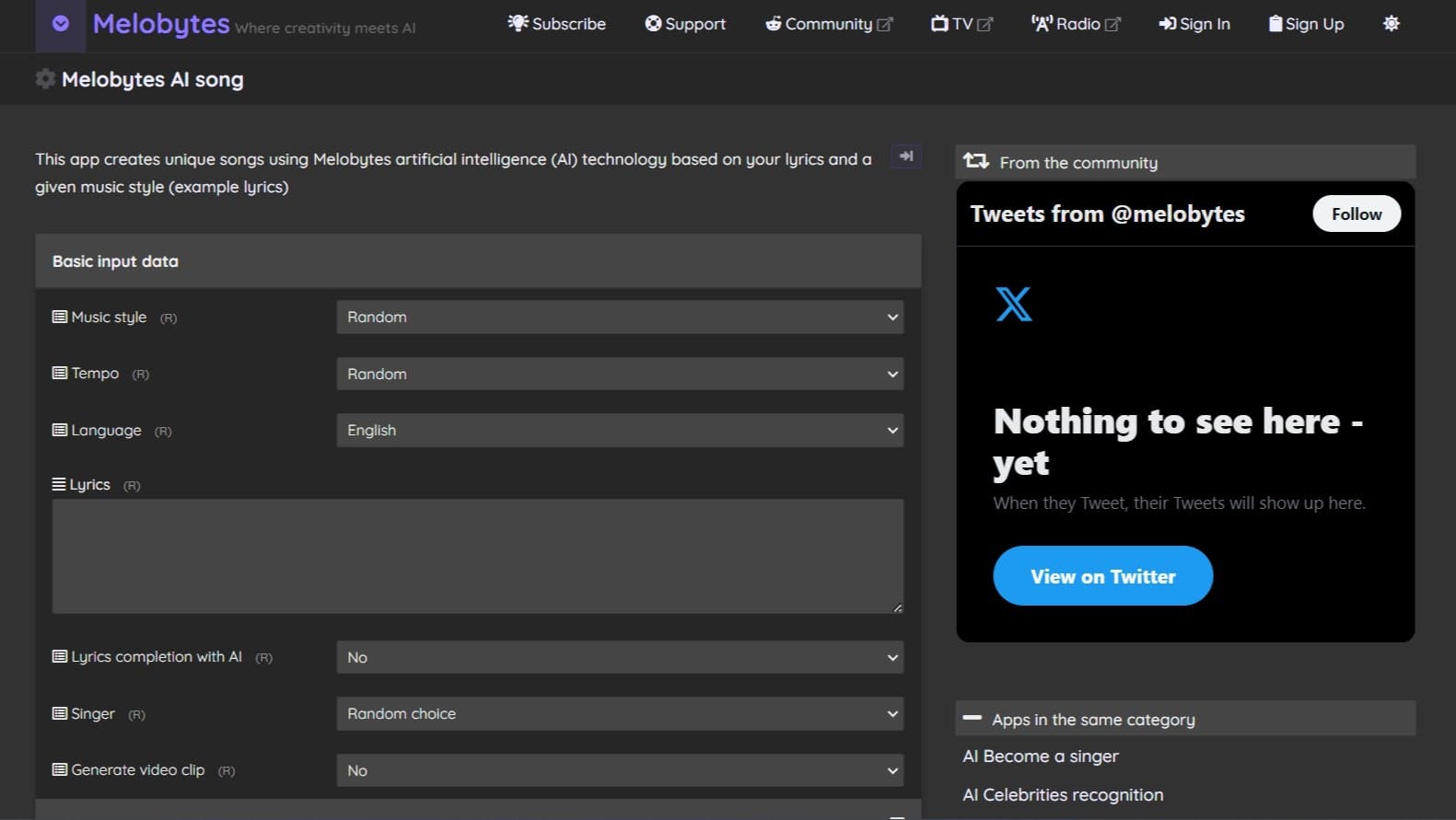 Experience the fusion of creativity and artificial intelligence with Melobytes.com, a platform dedicated to generating music and multimedia content through the power of AI. Whether you’re looking to transform text into a captivating song, create engaging AI-powered videos, or simply explore your artistic side, Melobytes.com offers a wide array of tools to make your vision a reality. Dive into our innovative Music Composition tools to bring your tunes to life or utilize our state-of-the-art Voice Composition features for unique text-to-speech and singing capabilities. Our Algorithmic Music section offers everything from chord progression generation to ambient music creation, perfect for setting the mood. And if it’s Lyrics you’re after, our AI can help craft bars or analyze existing lyrics for deeper insight. Melobytes.com doesn’t stop at audio—explore our Image-Video category for AI-based image editing, video cartoonization, and more. Boost your language skills with games, puzzles, and generators, or indulge in fun and games with our engaging Melogames. Whether you’re a musician, storyteller, or creator, Melobytes.com is where your creativity meets AI.