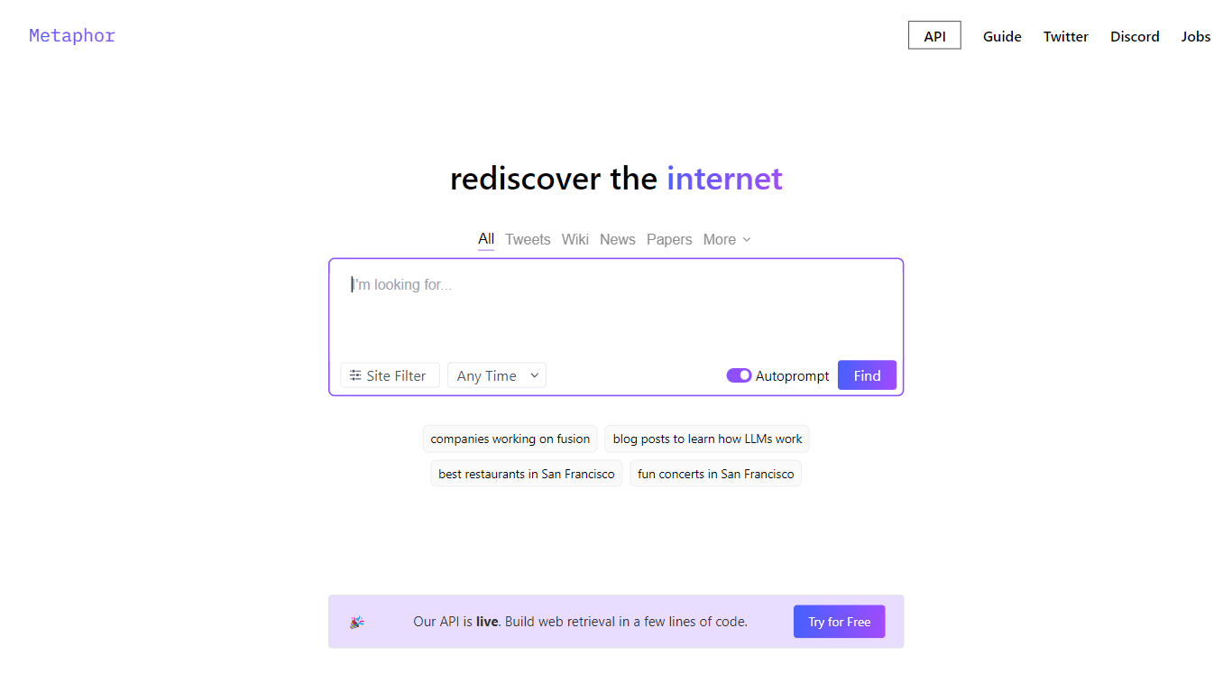 At its core, Metaphor is a search engine that goes beyond traditional keyword-based searches. Powered by cutting-edge artificial intelligence, it understands the nuances of human language and context, allowing you to search using natural language queries. Whether you’re looking for specific information, researching a complex topic, or simply exploring different perspectives, Metaphor provides intelligent and accurate search results.