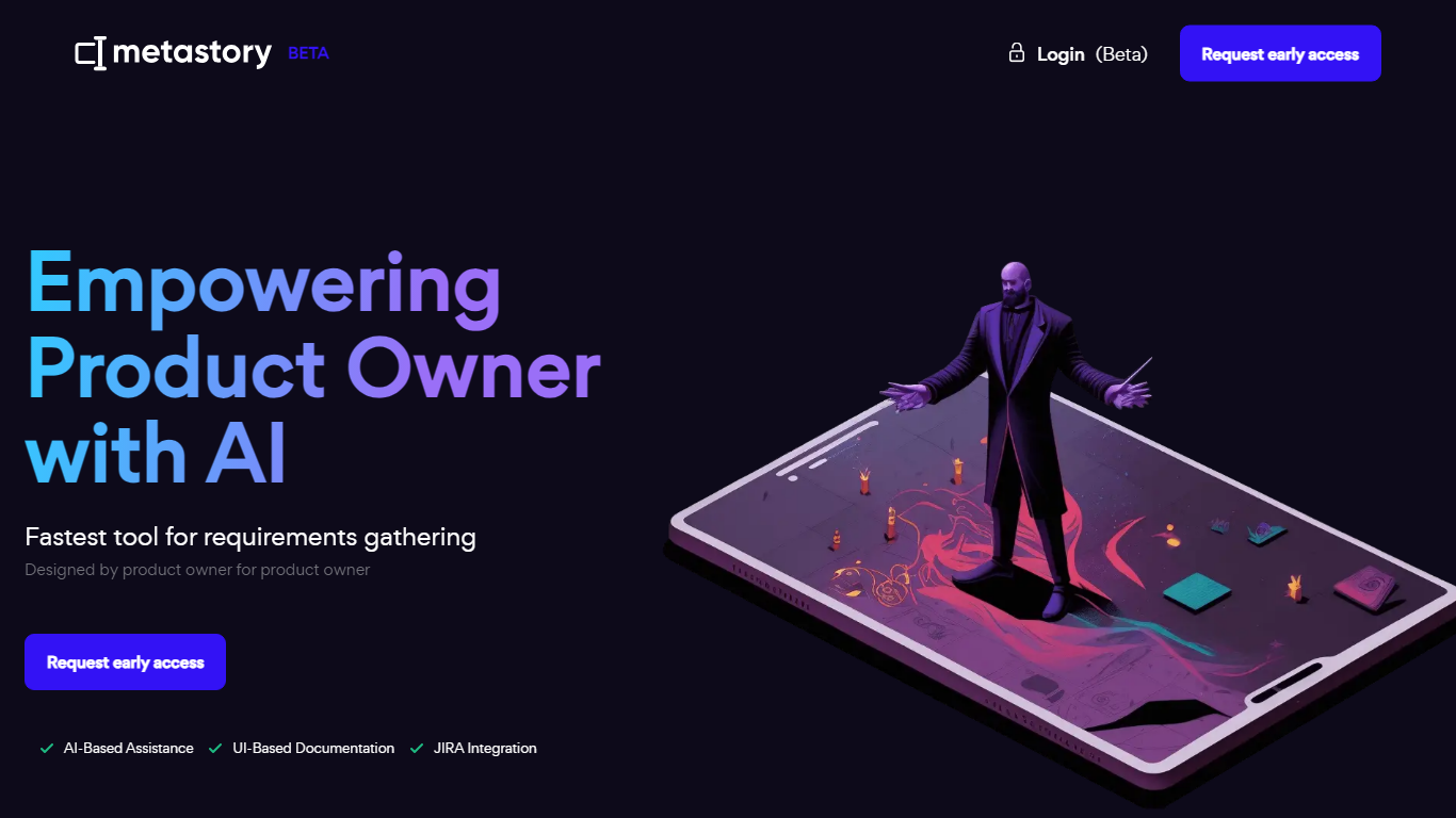 Metastory is revolutionizing the realm of product management by harnessing the power of artificial intelligence to streamline the requirements gathering process. With a platform designed by product owners for product owners, metastory ensures the fastest and smartest approach to product development. This tool focuses on three core pillars: AI-Based Assistance, UI-Based Documentation, and seamless JIRA Integration, providing invaluable support at each step of the project management journey. AI-Based Assistance offers collective intelligence, helping you to overcome the challenges of requirements gathering swiftly. Meanwhile, UI-Based Documentation bridges the gap between user interface and requirements, allowing for a smooth transition and clear communication throughout the planning and development stages. Lastly, with its Pre-JIRA Tool capabilities, it integrates perfectly with JIRA, enabling product owners to outline requirements rapidly and initiate projects with a fresh perspective, enhancing productivity and efficiency.