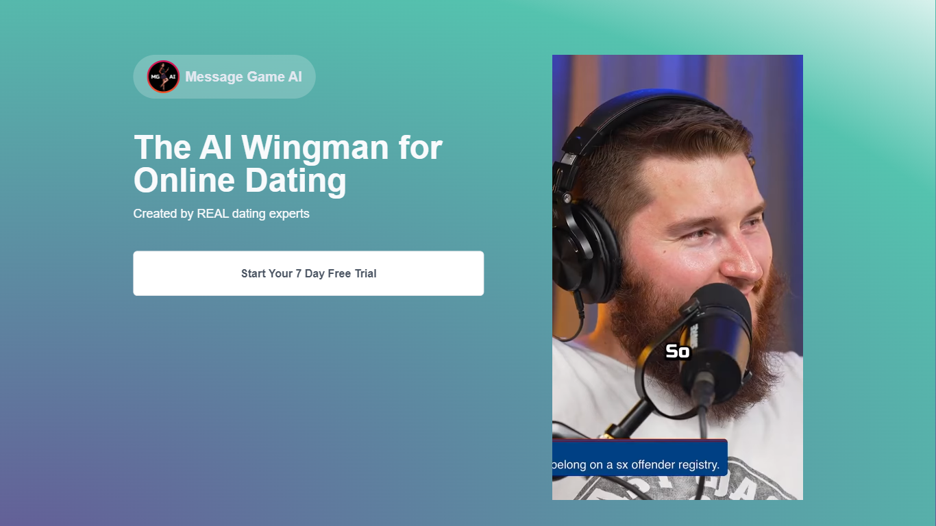 MGAI is the AI wingman for online dating, created by Ice White and Novo AI. It is based on the bestselling book The Message Game and is designed to give you exactly what to send to women on dating apps, social media and other messaging platforms.
