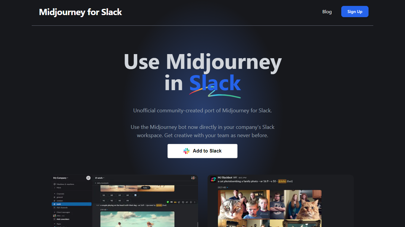 Experience the fusion of creativity and collaboration with Midjourney for Slack, the unofficial community-created plug-in that transforms your Slack workspace into an AI-powered image generation studio. **Conveniently integrated into Slack**, this innovative bot allows your team to conjure up stunning visuals without ever leaving the app.