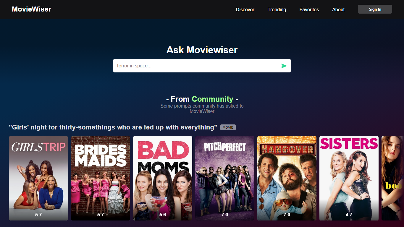 Welcome to MovieWiser, your ultimate AI-driven companion in navigating the vast world of movies and series. Our sophisticated algorithm curates personalized recommendations to match your unique tastes and preferences. Whether you’re in the mood for an action-packed adventure or a touching drama, MovieWiser is here to guide you to your next favorite flick.