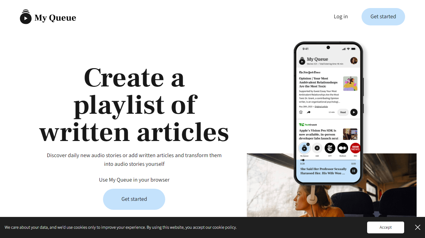 Transform the way you consume written content with My Queue – your ultimate tool to create playlists of articles and enjoy them in audio format. With My Queue, you can start your day with fresh audio stories from prominent news outlets like The New York Times, Medium, BBC, The Guardian, CNN, and TechCrunch. Experience the ease of adding new articles to your personalized queue with a simple horizontal swipe and selection on the My Queue app.