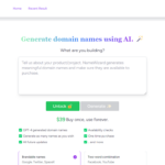 Unleash the creativity of AI to find the perfect domain name for your next project with NameWizard. Our tool utilizes the innovative power of GPT-4 to generate domain names that are not only unique but also have the potential to stand out in the crowded digital space. Begin your journey effortlessly—just provide a brief description of your venture, and let our AI wizard conjure up a list of domain names for you.
