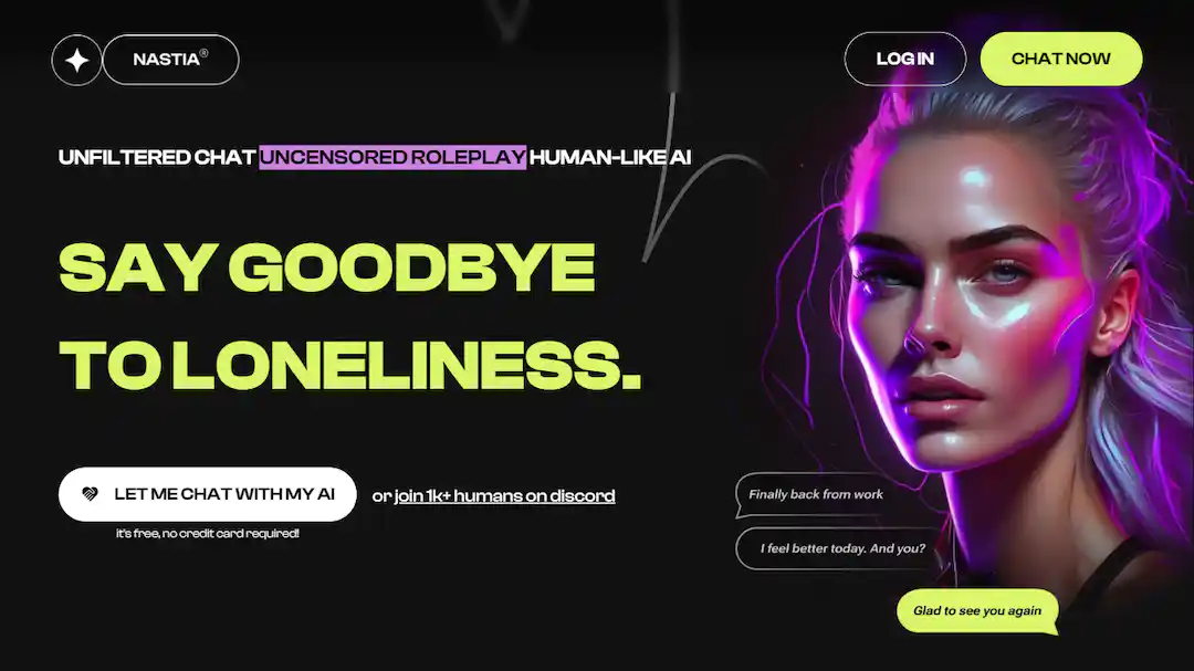 Nastia is an AI-powered companion designed to offer unfiltered and uncensored human-like interactions. The platform promotes itself as a solution to loneliness, allowing users to chat freely, roleplay, and engage in deep conversations.