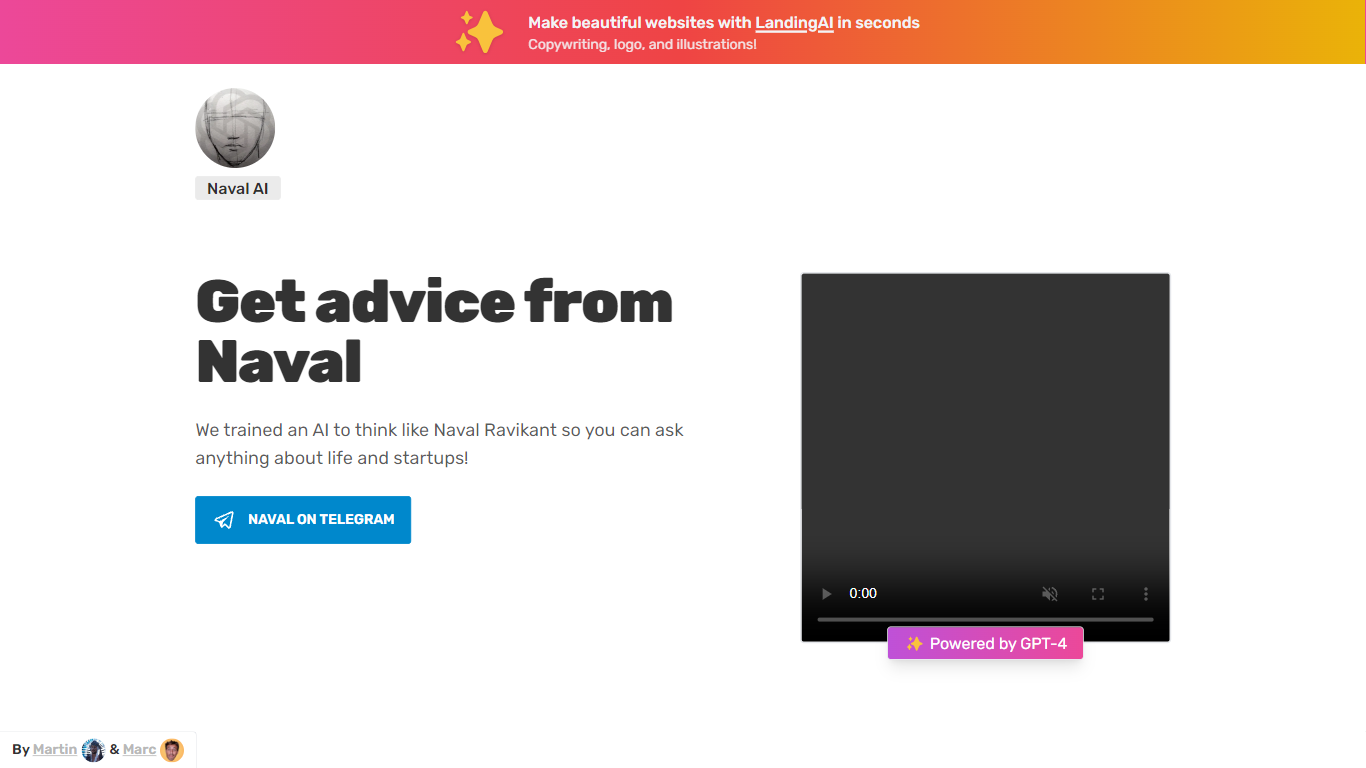 Dive into the insightful world of Naval Ravikant with Naval AI, your personal coach in life and entrepreneurship. This innovative platform leverages the advanced capabilities of GPT-4 to emulate the wisdom of Naval Ravikant, enabling users to seek guidance on a range of topics from life advice to startup strategies. With Naval AI, gain access to the profound quotations and business acumen of an early investor in companies like Uber and Twitter, tailored to support, motivate, and inspire you whenever needed. Naval AI on WhatsApp and Telegram offers an interactive experience that is not merely an imitation but an enrichment of Naval’s philosophies. The service comes at an affordable price of $7 per month, after 20 free messages, incorporating the promise of unlimited exchanges and 5% of proceeds dedicated to the planet. It’s an attractive proposition for those looking for practical advice rooted in the successful principles of one of the modern thought leaders in business and personal development. Please note, this service is independently operated and not directly associated with Naval Ravikant and should not be considered a substitute for professional life or financial advice.