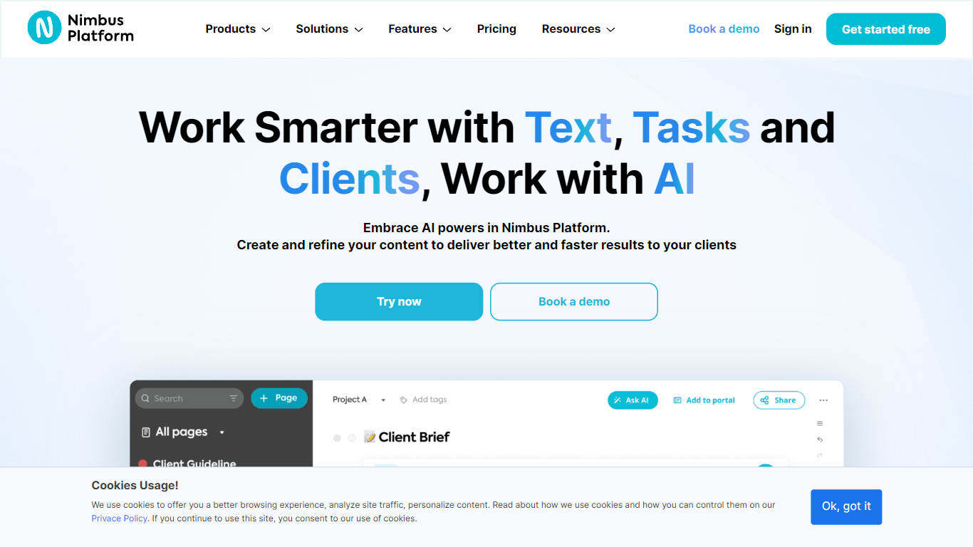 Optimize your work with an integrated AI assistant – generate and improve new and existing content. Nimbus Platform is a powerful tool designed to enhance your productivity and efficiency. With its advanced features and capabilities, it takes your work to the next level.