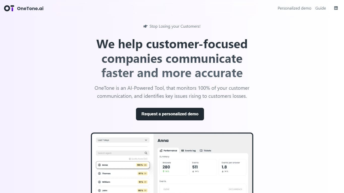 OneTone.ai is an AI-powered platform that gives you valuable insights, allowing you to make informed decisions and deliver top-notch customer service.