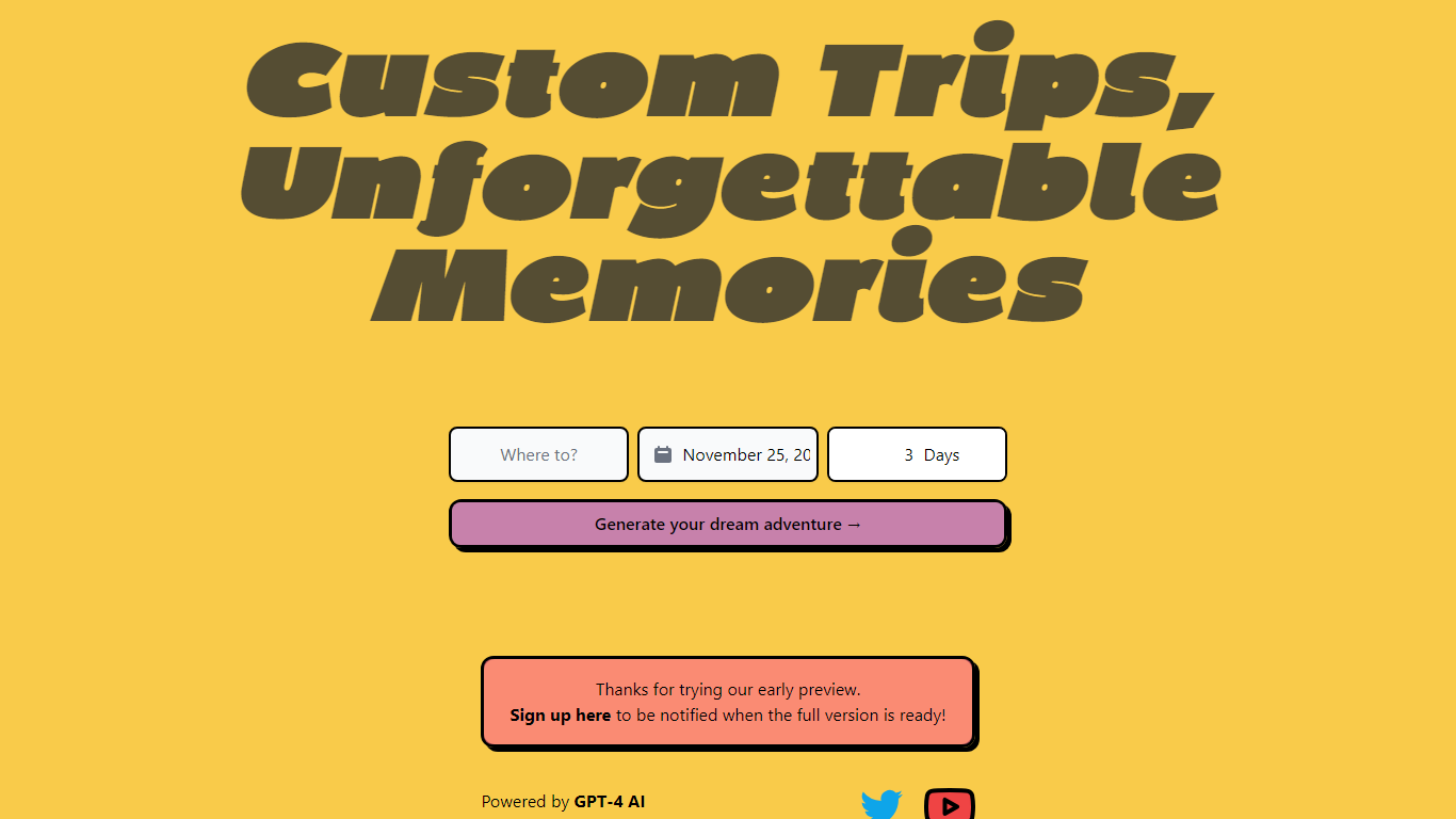 - **Early Access:** Be among the first to experience our innovative travel planning tool.
