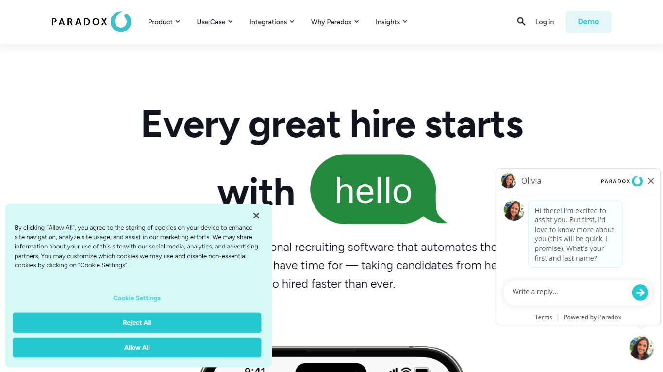 With Paradox’s conversational software, businesses can overcome the challenges of traditional recruiting methods and embrace a more efficient and effective approach. From screening to onboarding, Paradox is the ideal companion for companies looking to streamline their hiring processes, find the right talent, and make a lasting impression on candidates.