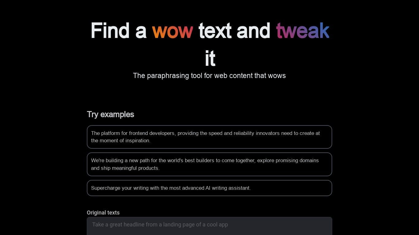 The paraphrasing tool for web content that wows. The platform for frontend developers, providing the speed and reliability innovators need to create at the moment of inspiration.