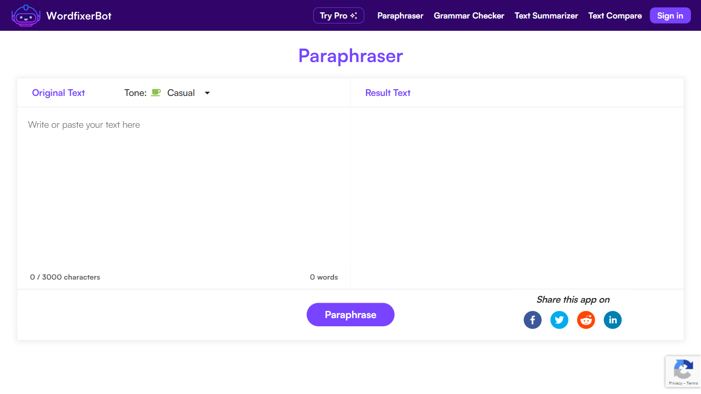WordfixerBot’s Paraphrasing Tool is a comprehensive and efficient tool designed to assist users in rephrasing any type of text, sentence, article, paragraph, paper, or document with ease. With this powerful tool, users can quickly and accurately transform their writing, making it more engaging and unique.