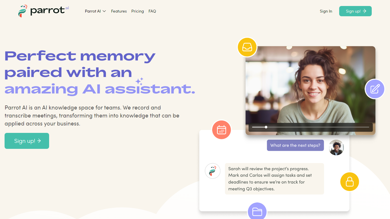 Embrace the power of Parrot AI’s video-rich, editable pages, aiding your team in turning conversations into actionable knowledge. Our intelligent search with AI assistance provides essential context, making finding critical information both quick and effortless. All of these features come together to foster a culture of innovation and efficiency, trusted by over 10,000 companies.