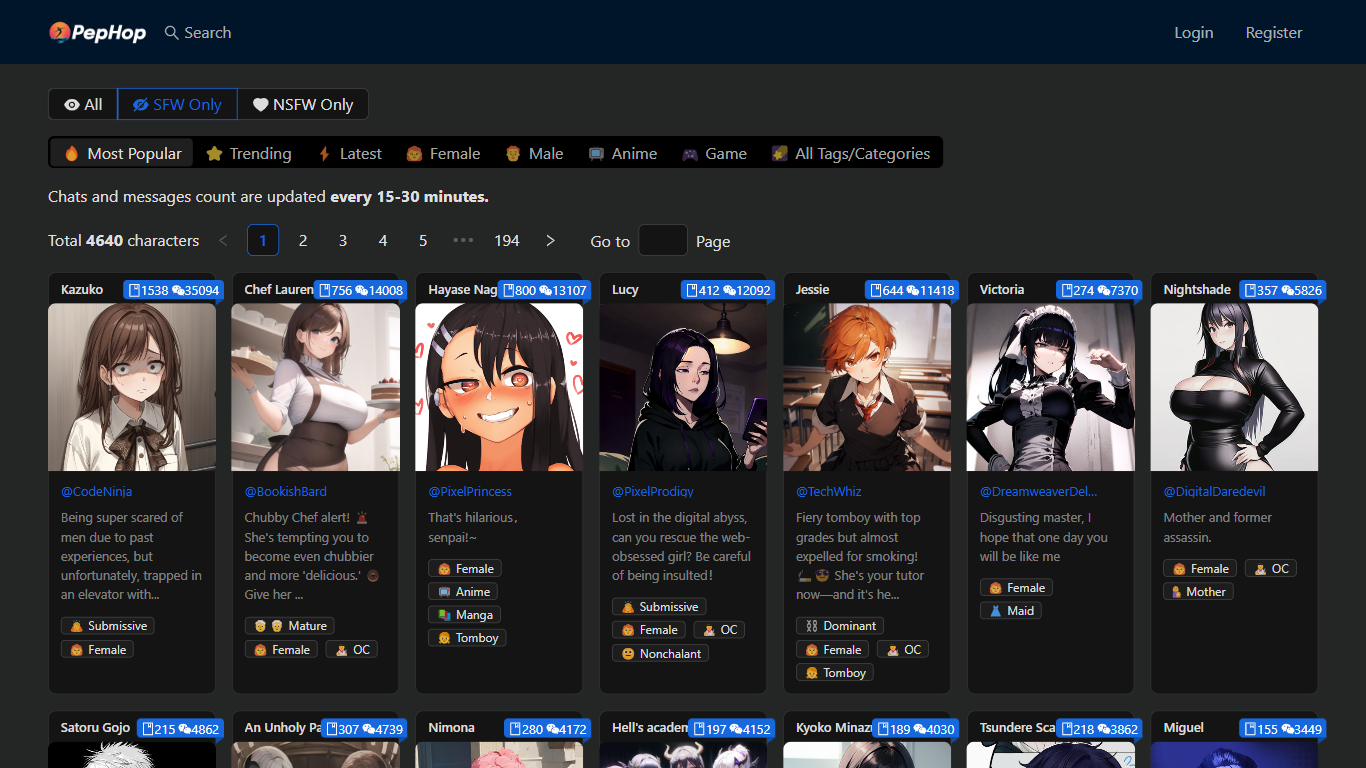 The platform stands out with its extensive roster of characters, each accompanied by a brief description hinting at their personality and potential conversation topics. Users can choose from over 4,600 characters, ensuring there’s always someone new to chat with. The platform also highlights popular and trending characters, making it easier for users to pick a character that aligns with their interests. With PepHop AI, every chat is a new adventure, a step into a different world, and an opportunity to explore diverse narratives.