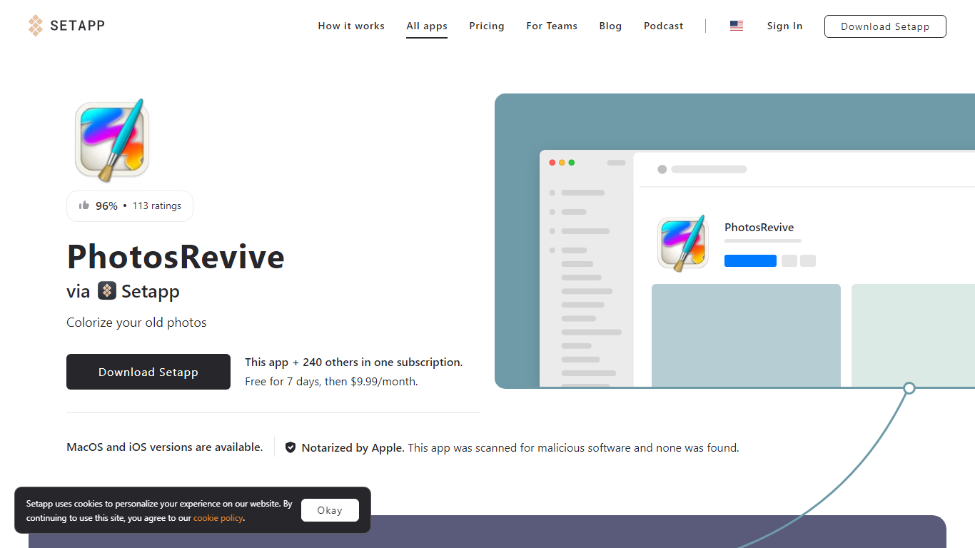 Revive the charm of bygone eras with PhotosRevive, an innovative app by NeededApps designed to breathe life into your monochromatic memories. This sophisticated software employs revolutionary artificial intelligence to automatically colorize black and white photos with remarkable ease and precision. Whether you are an enthusiast or a professional, PhotosRevive ensures a user-friendly experience, enabling you to import photos directly from your library or scan them using the app. With a simple click on the “Colorize” button, the AI works its magic, providing you with vividly restored images. The manual mode offers an added level of control, allowing for personal color adjustments, ensuring your refreshed photos match your precious recollections. With PhotosRevive, your photos remain confidential and the AI operates flawlessly offline, ensuring privacy and convenience. Available for Mac with a free trial, this app continuously evolves, integrating the latest device features to enhance your experience. Embrace the past in full color with PhotosRevive.