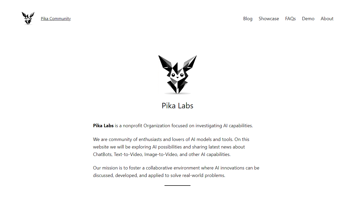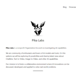 Welcome to Pika Labs, a nonprofit organization dedicated to the exploration and advancement of artificial intelligence technologies. At Pika Labs, we pride ourselves on being a vibrant community of AI enthusiasts and aficionados. Our website is a hub for exploring the potential of AI, showcasing the latest developments and sharing insights on a range of AI-related capabilities, including ChatBots, Text-to-Video, Image-to-Video, and more.