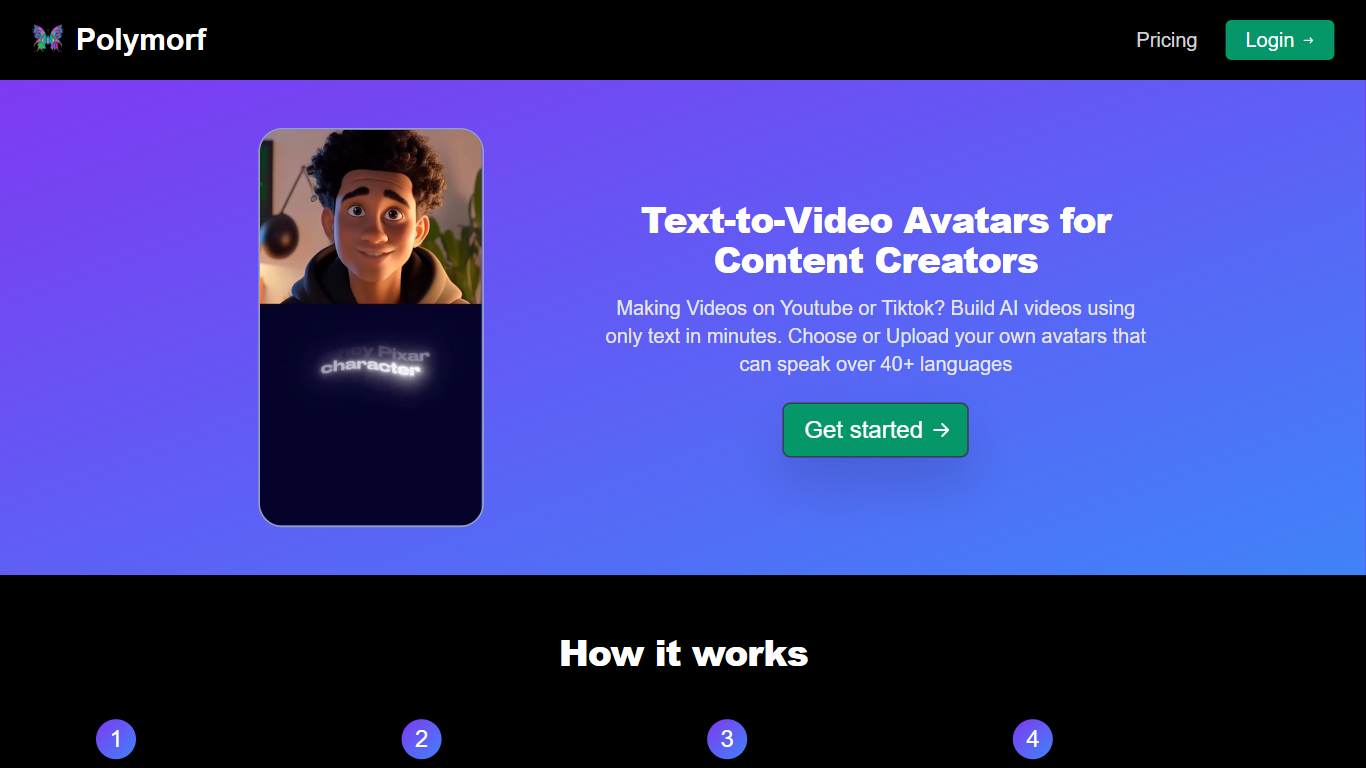 Polymorf is a Text-to-Video Avatar generator similar to d-id. You choose an avatar or upload your image, type a text, or upload custom audio, and it will generate a talking head animation in video format.