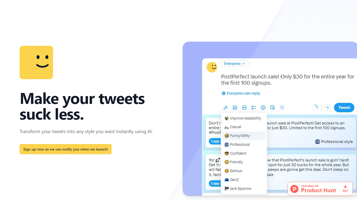 Sign up now to be at the forefront when PostPerfect launches, and transform the way you tweet with the power of AI.