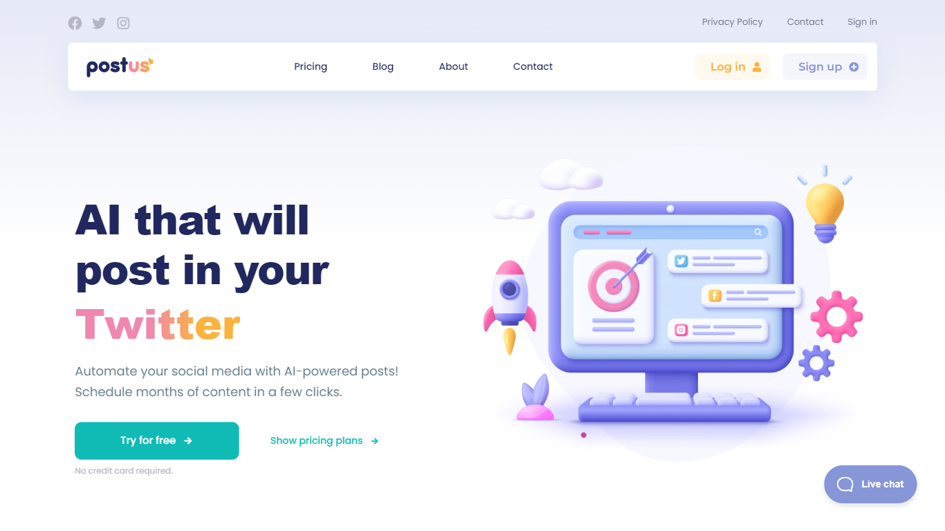 Postus is an innovative AI-powered tool that revolutionizes social media automation. With Postus, you can streamline your social media presence by generating and scheduling months of content with just a few clicks. Say goodbye to manually brainstorming and creating posts—Postus does it all for you!