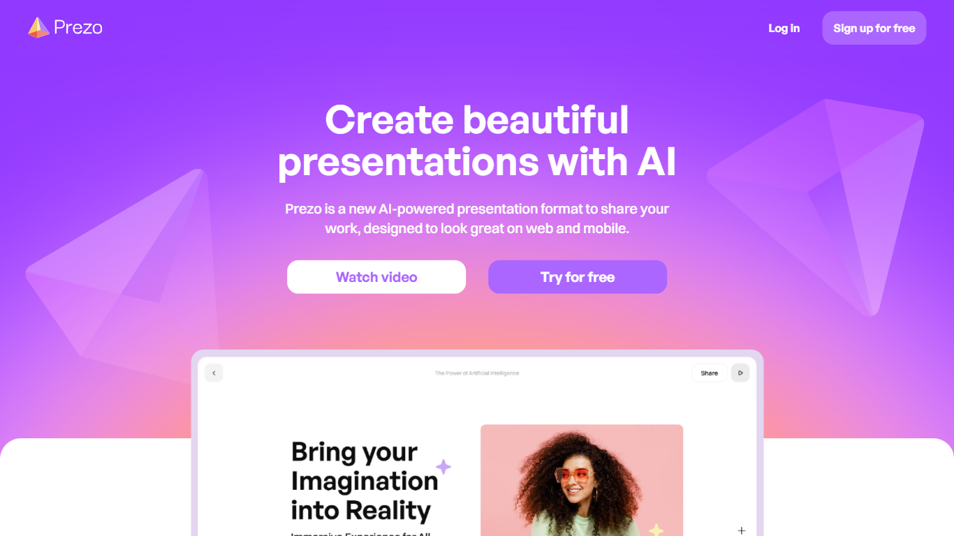 Transform your ideas into stunning visual stories with Prezo, the revolutionary AI-powered presentation tool. Prezo is designed to amplify your productivity, allowing you to create beautiful presentations with ease. It works seamlessly across web and mobile, ensuring accessible viewing on all devices.