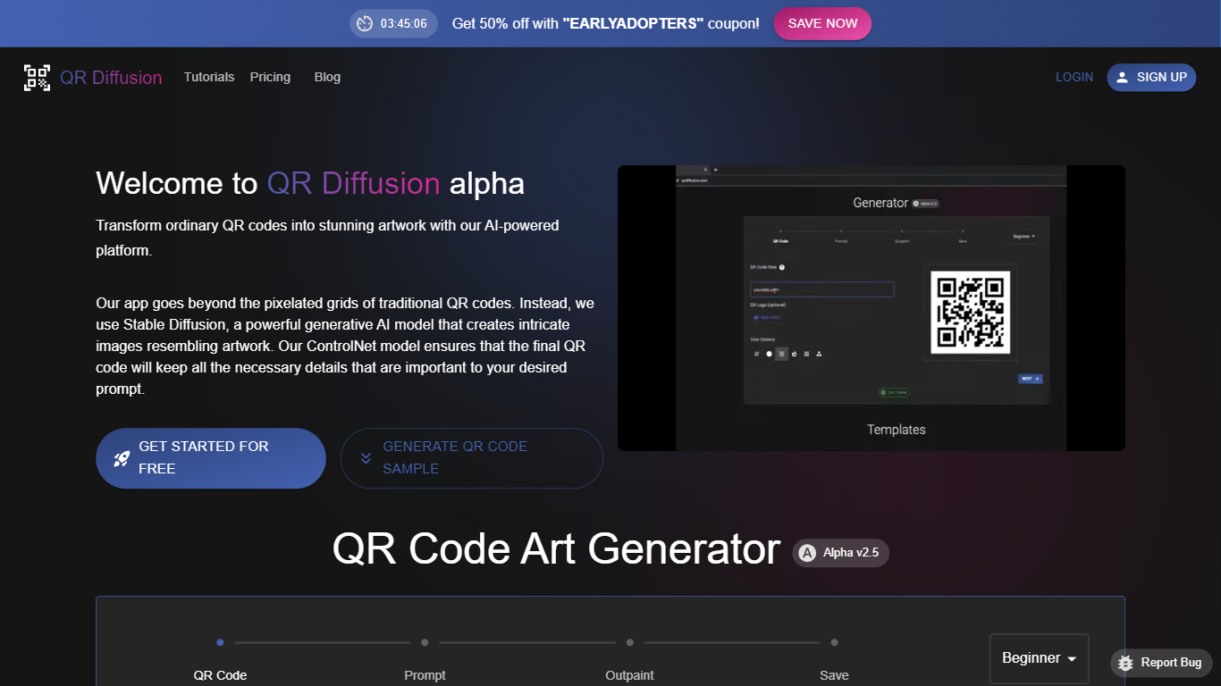 QR Diffusion is a unique Artistic QR code generator! Combining AI knowledge with dynamic art, we evolve the standard black and white QR codes into enthralling designs that are both visually spectacular and fully functional. QR Diffusion creates QR codes that effortlessly marry style and utility. Choose QR Diffusion: it’s the perfect fusion of art and technology, making it chic, functional, and intelligent! Register and enjoy free creations of Artistic QR codes!