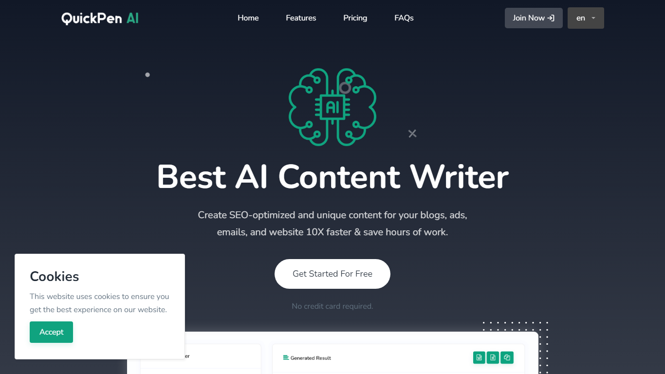 Transform your writing experience with QuickPen AI, the ultimate AI content writer designed to help you create SEO-optimized and unique content effortlessly. Ideal for busy individuals seeking to produce content at lightning speed, QuickPen AI ensures that your blogs, ads, emails, and website are not only engaging but also rank high on search engines. Begin your journey towards efficient content creation with a simple registration – no credit card needed to start!