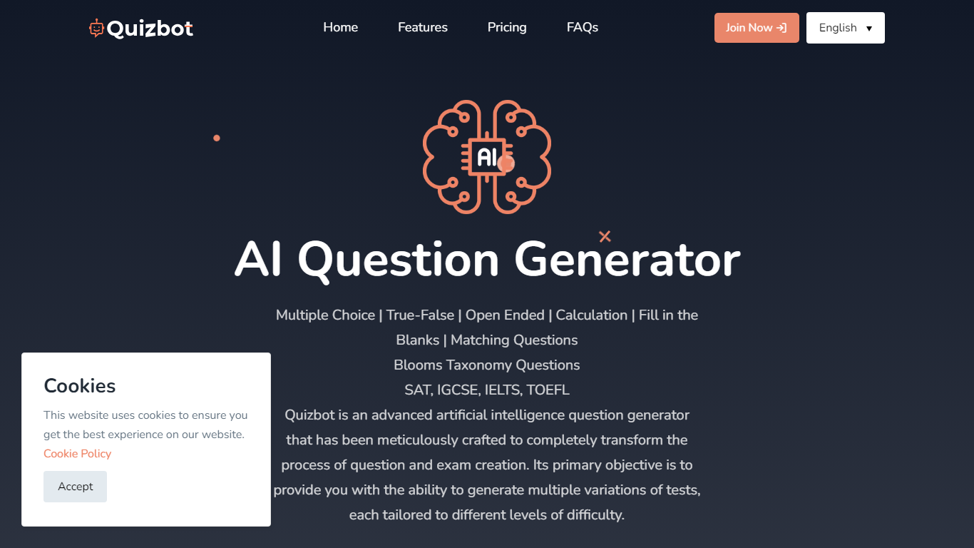 Teachers and educators can now solely focus on facilitating learning as Quizbot takes on the task of generating various question types—be it Multiple Choice, True/False, Fill in the Blanks, Matching, or even the more complex Bloom’s Taxonomy Questions. Moreover, Quizbot is adept at preparing for standardized tests such as the SAT, IGCSE, IELTS, and TOEFL, making it an unparalleled tool in both academic and exam preparation.