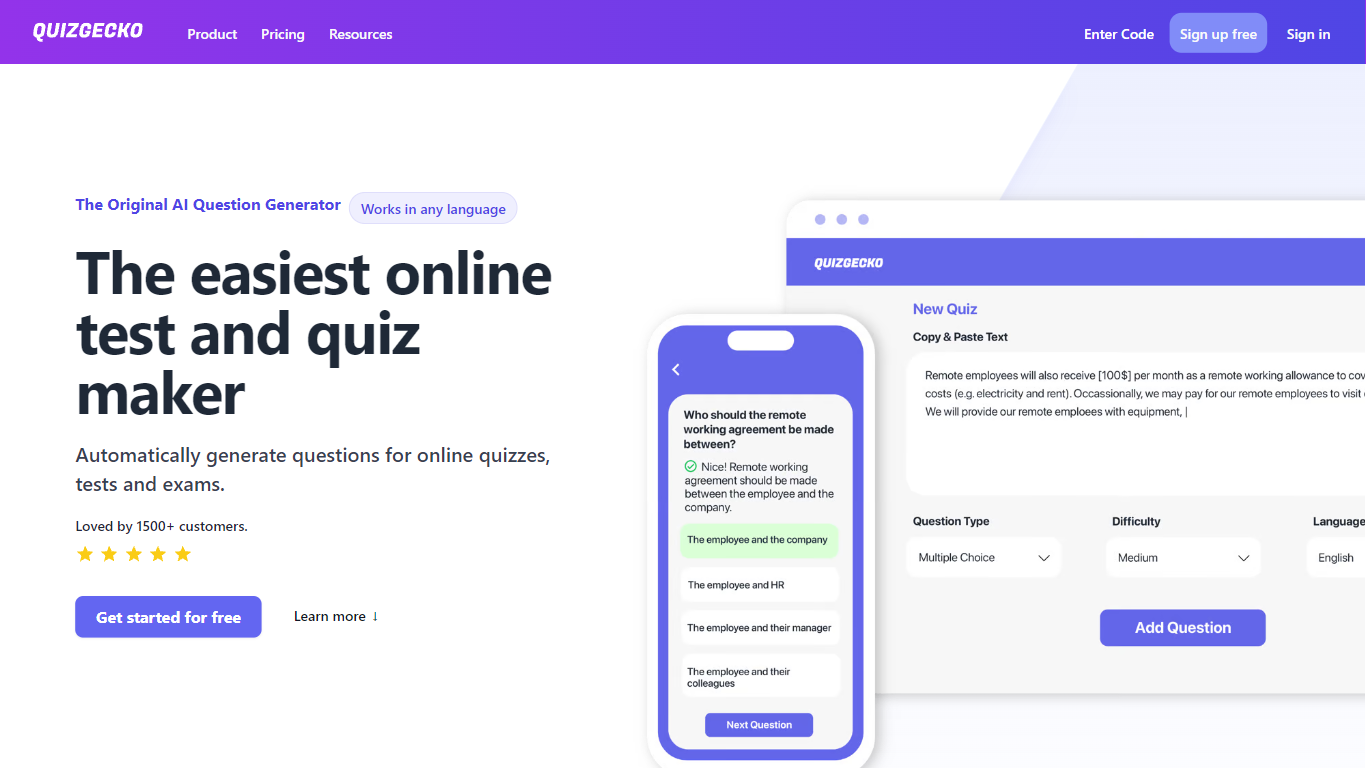 Quizgecko is an innovative AI tool that revolutionizes the process of creating quizzes. With its advanced question generation capabilities, Quizgecko allows users to effortlessly generate shareable quizzes from text in a matter of seconds. Whether you are a teacher looking to create engaging educational quizzes or a content creator seeking to add interactive elements to your articles, Quizgecko has got you covered.