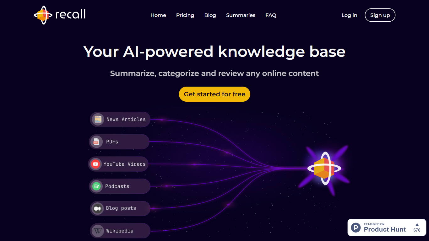 Recall is a powerful tool that allows you to easily summarize and save any online content to your personal knowledge base. Whether it’s a YouTube video, a blog post, a PDF, an article, or any other type of online content, Recall has got you covered. With Recall, you can quickly and efficiently extract key information from these sources and store them in an organized and easily accessible manner.