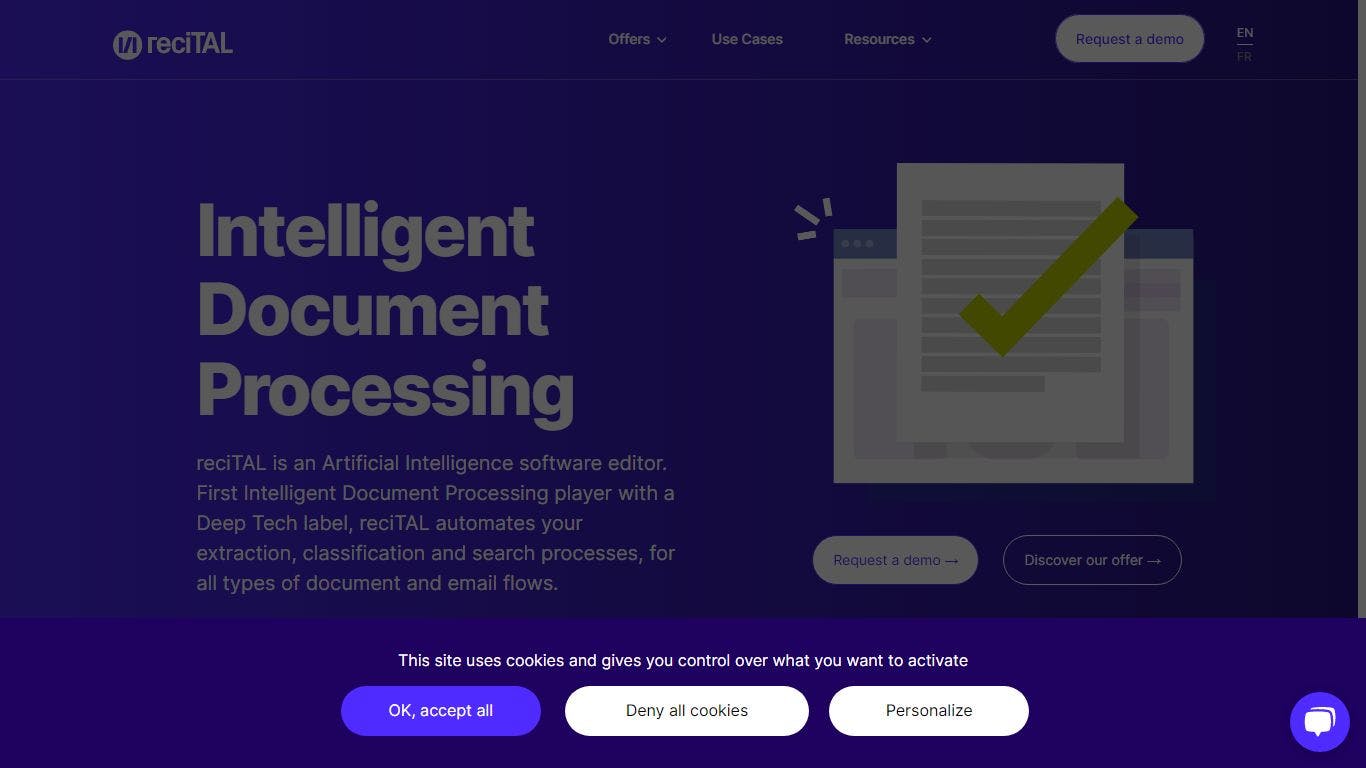 First Intelligent Document Processing player with a Deep Tech label, reciTAL automates your extraction, classification and search processes, for all types of document and email flows.
