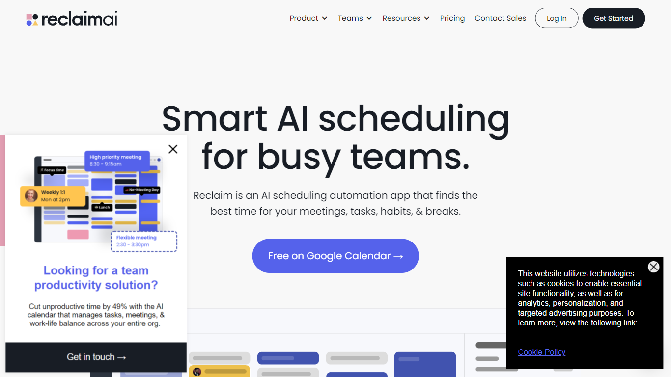 Reclaim AI is an innovative app that revolutionizes time management for teams. Powered by artificial intelligence, Reclaim creates a more efficient and productive work environment by automating task scheduling, habit tracking, meeting organization, and breaks. With Reclaim, teams can reclaim up to 40% more time to focus on their most important work.