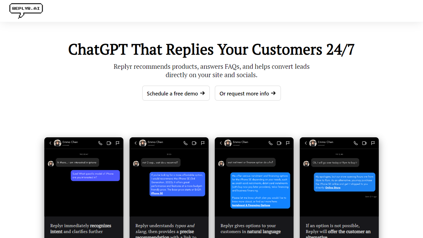 - Replyr.ai can understand the intent and context of your customersâ messages, even if they contain typos or slang