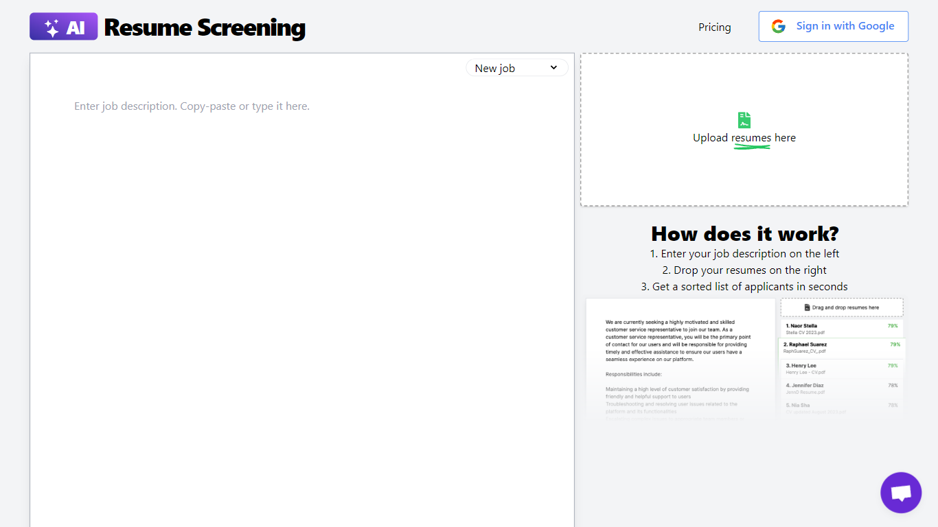 - **Time-Efficient Screening**: Rapidly sort through hundreds of resumes and get a ranked list of applicants tailored to your job description.