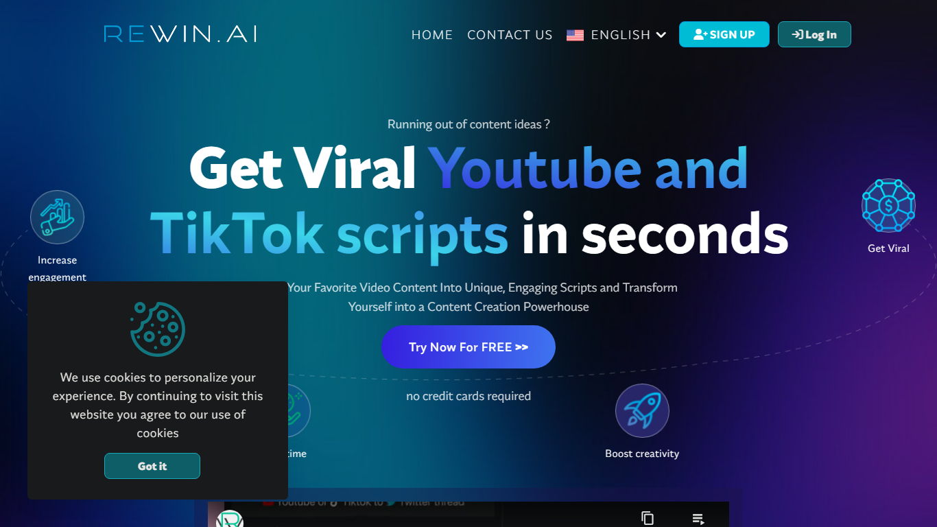 REWIN is an AI-driven tool designed to help content creators maximize their video script’s potential for virality on platforms like YouTube and TikTok. With REWIN, you get access to valuable insights from top-performing content across social networks. The tool enables users to rephrase and optimize their video scripts effortlessly, resulting in a significant increase in views and online presence. REWIN’s no-credit-card-required policy makes it inviting for creators to try out its features and transform their content creation process into a more engaging, time-saving, and creative practice.