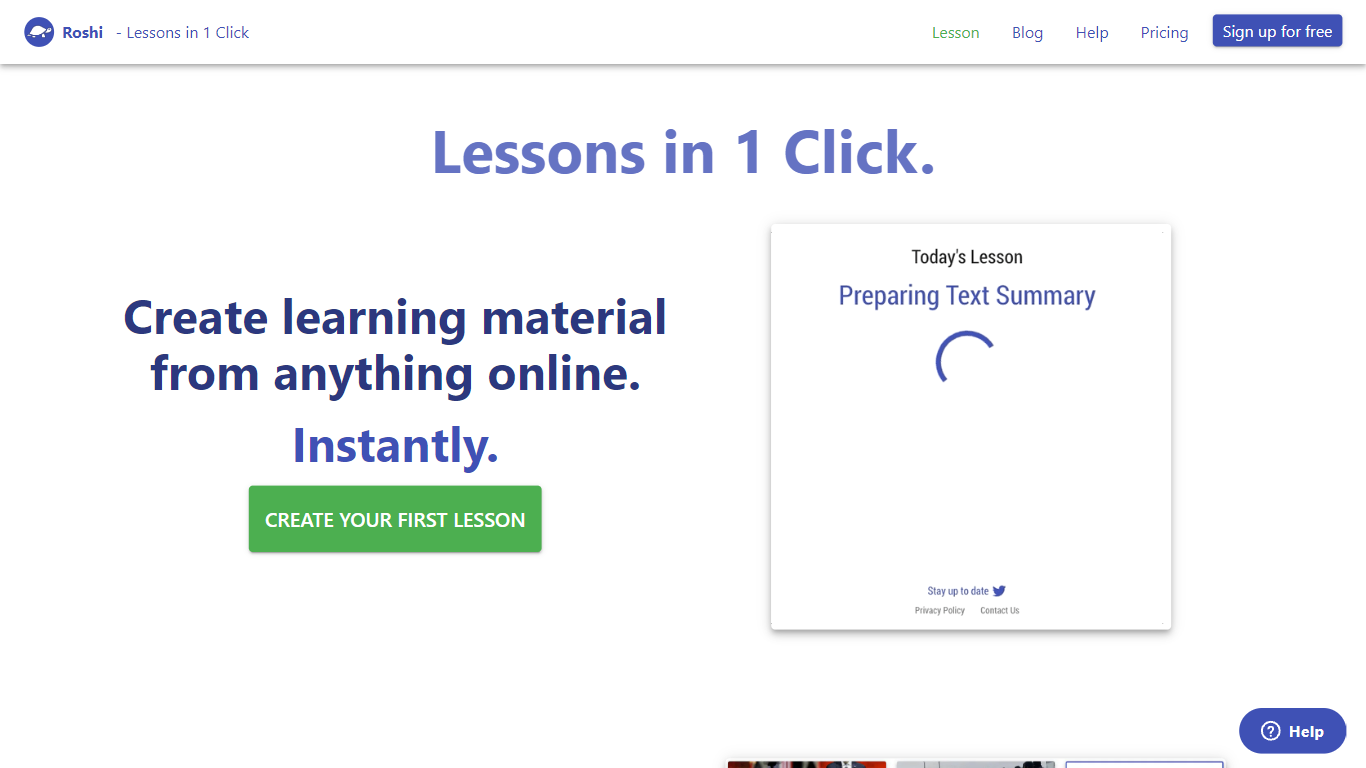 Roshi is a revolutionary online platform that offers custom lessons in seconds. With the goal of making learning more accessible and efficient, Roshi provides a unique and personalized learning experience for individuals of all ages and backgrounds.