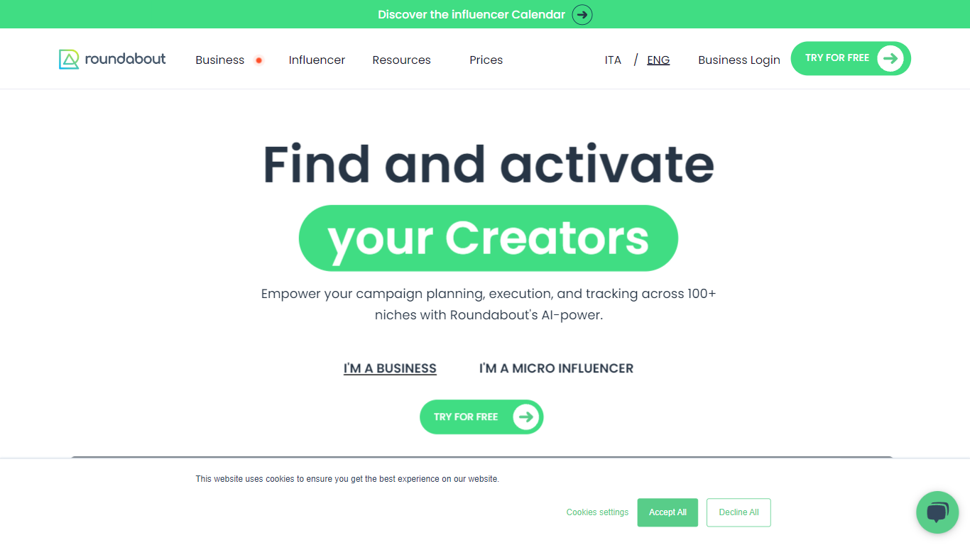 Roundabout is an AI-powered influencer marketing platform that is designed to empower your campaign planning, execution, and tracking across over 100 niches. With Roundabout, you can easily find and activate your desired creators to collaborate with and maximize the impact of your influencer marketing campaigns.