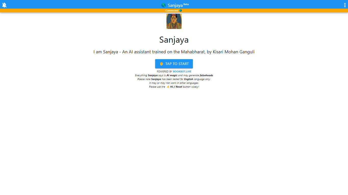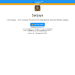 Discover the wisdom of the epic Mahabharata with Sanjaya, your dedicated AI assistant. Sanjaya is designed to offer guidance and insights inspired by one of the greatest ancient Indian epics, providing an innovative fusion of tradition with technology. Immerse yourself in the historical narratives and explore philosophical concepts through an accessible AI that’s been meticulously trained by the translations of Kisari Mohan Ganguli. Embrace a journey of enlightenment as each session with this AI evokes the spirit of the Mahabharat’s timeless teachings.