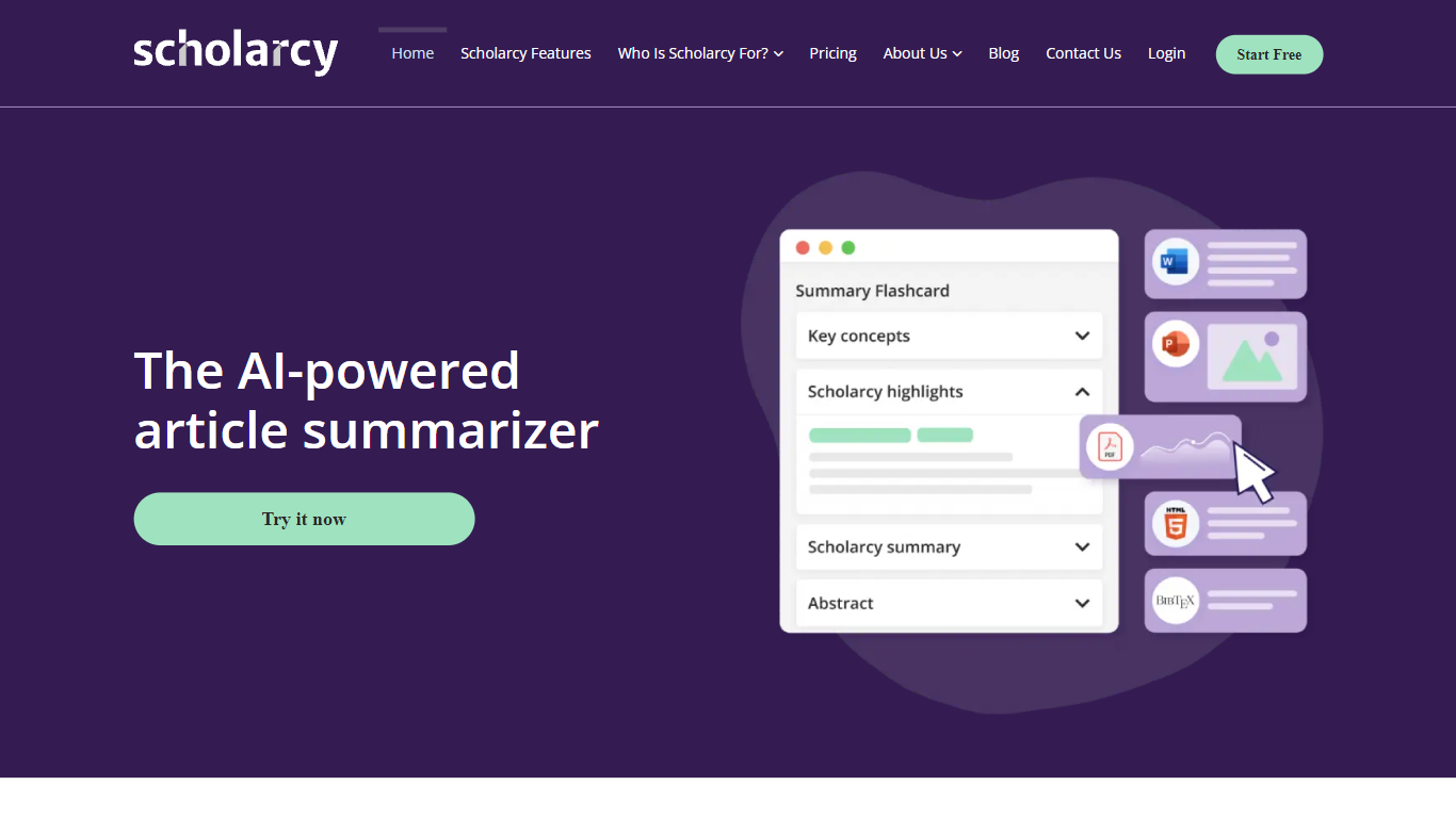 Scholarcy™ is an innovative online tool designed to make summarizing long articles easier and more efficient. With just a few clicks, users can convert lengthy articles into concise and informative summary flashcards. This powerful tool utilizes advanced algorithms to analyze the content and extract the most important information, providing users with a comprehensive overview of the article’s key points.