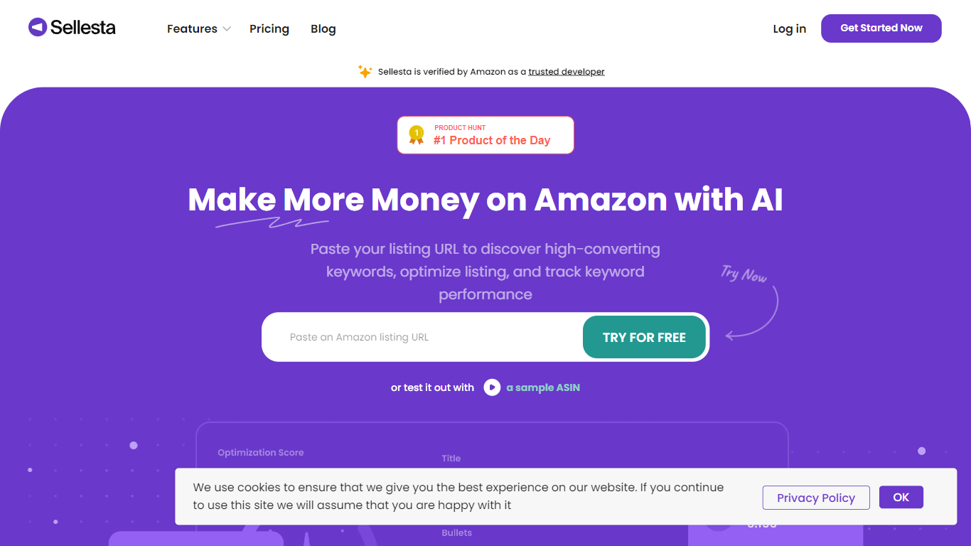 Sellesta.ai is an AI platform specifically designed for Amazon sellers. Our platform aims to help Amazon sellers grow their businesses by maximizing the ranking and conversion rates of their product listings. With our advanced AI tools and algorithms, we provide sellers with the necessary insights and strategies to optimize their listings and stand out in the competitive Amazon marketplace.