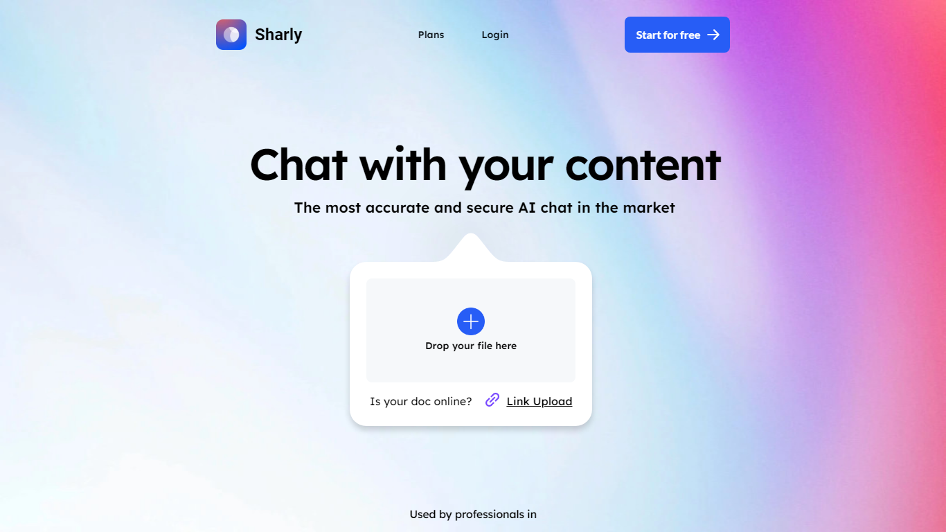 Sharly AI revolutionizes the way professionals interact with content, offering an unparalleled AI chat experience with a focus on precision and security. Start for free and discover the market’s most accurate AI chat tool, trusted by experts across various industries.