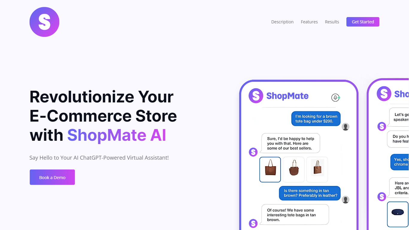 ShopMate is an AI-powered e-commerce platform that revolutionizes your online store with the help of ChatGPT. Using advanced machine learning and natural language processing techniques, ShopMate AI personalizes recommendations, upsells and cross-sells products, and engages customers in real-time. With ShopMate AI, you can elevate your e-commerce store and drive sales while boosting conversions. The platform analyzes customer behavior and preferences to provide personalized product recommendations, optimizing search results and increasing conversion rates. With ShopMate AI’s 24/7 support, you can cut costs and never miss a sale again. The AI-powered assistant handles customer inquiries, reducing the need for additional staff and providing constant support to your customers. By maximizing your sales with upselling and cross-selling, ShopMate AI suggests complementary items and offers personalized recommendations, boosting your revenue and sales. Furthermore, ShopMate AI helps you increase your conversion rate by engaging with customers in real-time, answering their queries, and providing personalized recommendations to help them make a purchase. With ShopMate AI, you can see real results, including an 18% boost in sales within the first month, 24/7 customer support availability, and an average reduction of 29% in operational costs. Stay ahead of the competition by transforming your store into an AI-powered sales machine with ShopMate AI today.