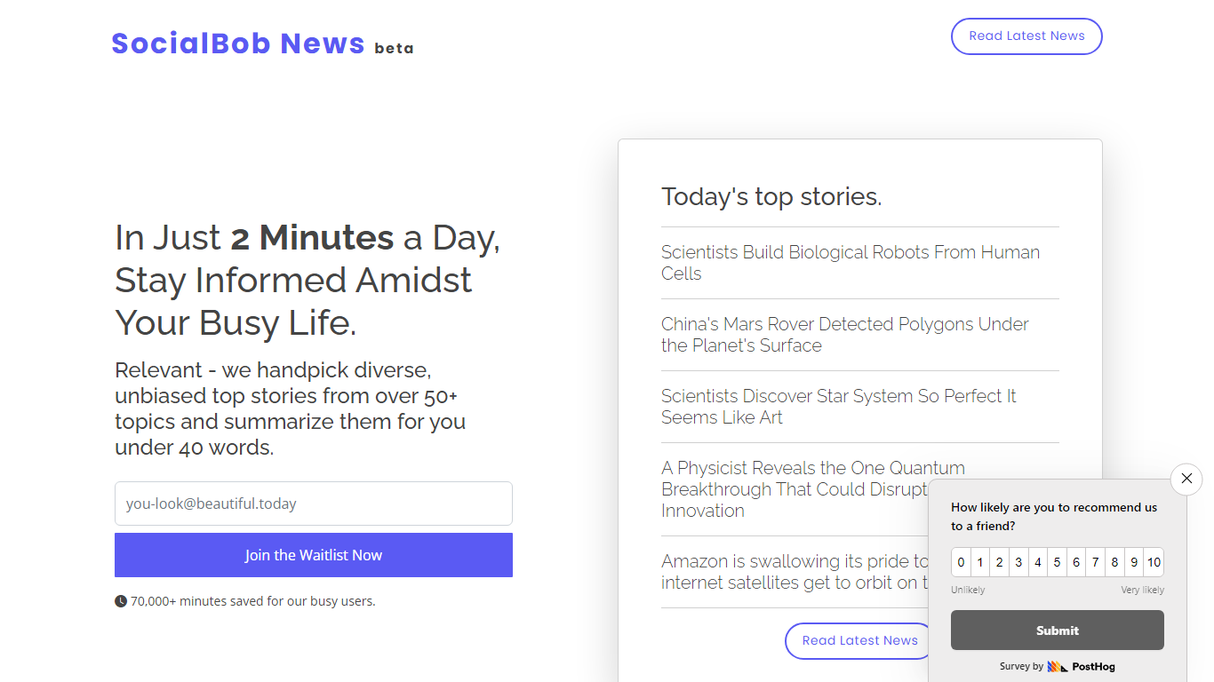 - **Time-Saver:** Save precious time with our efficient news delivery boasting over 70000+ minutes saved for users.