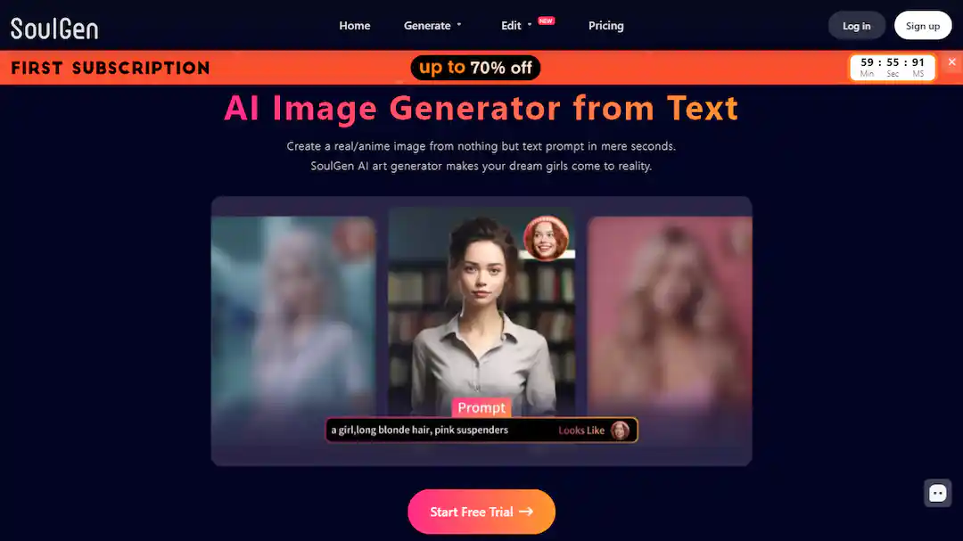 - **AI Image Generator from Text:** SoulGen allows users to create real or anime images based solely on a text prompt. Within seconds, the platform can bring to life any textual description, turning dreams into visual realities.