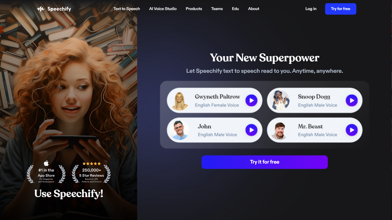 Speechify is the leading text to speech app that has garnered millions of downloads on Chrome, iOS, and Android. Whether you’re a student, professional, or someone who just wants to make the most of their time, Speechify can be your perfect companion. With Speechify, you can now hear the Internet on any device, transforming written text into spoken words.