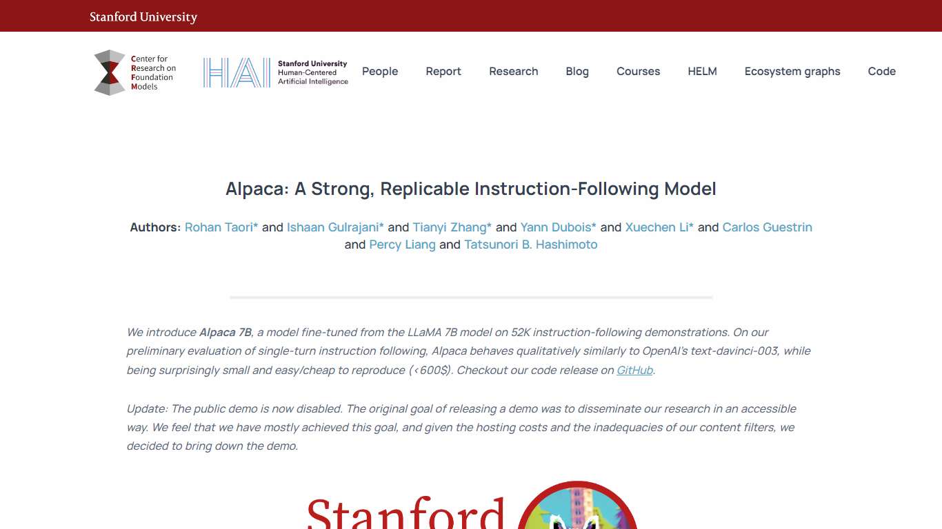 Discover Stanford CRFM’s latest breakthrough in AI research with Alpaca, a cost-effective and academically focused instruction-following model. This innovative model is fine-tuned from Meta’s LLaMA 7B and boasts an ability to perform tasks similar to OpenAI’s text-davinci-003 while being notably smaller and easier to replicate. Alpaca embodies Stanford’s commitment to democratize AI research by creating accessible assets, welcoming feedback, and encouraging community engagement in exploring model behaviors and capabilities.
