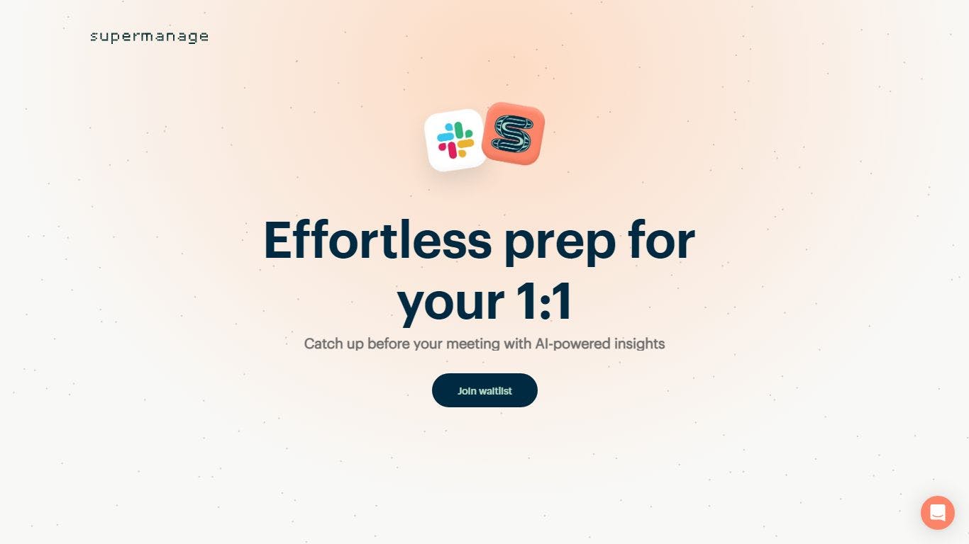 Supermanage helps managers and teams prepare for exceptional 1-on-1s. Our AI magically distills your teamâs public Slack channels into a real-time brief on any employee, any time. Catch up on contributions, challenges, and sentiment⦠everything you need to show up ready for a truly meaningful conversation.