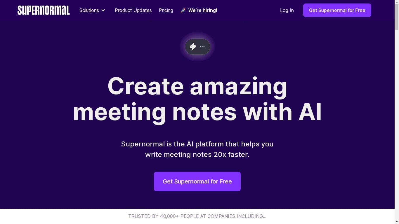 Supernormal AI is a tool that helps you save time and stay organized during meetings by automatically transcribing and writing the notes for you. It works with Google Meet, and can help you save five to ten minutes every meeting by taking care of the transcription work for you. The notes are instantly shareable to a variety of platforms, including Google Drive, Notion, Quip, Slack, Hubspot, and Salesforce, so you can easily share them with your team. With Supernormal AI, you can stay focused on the meeting and leave the note-taking to the AI, so you can get more done in less time.