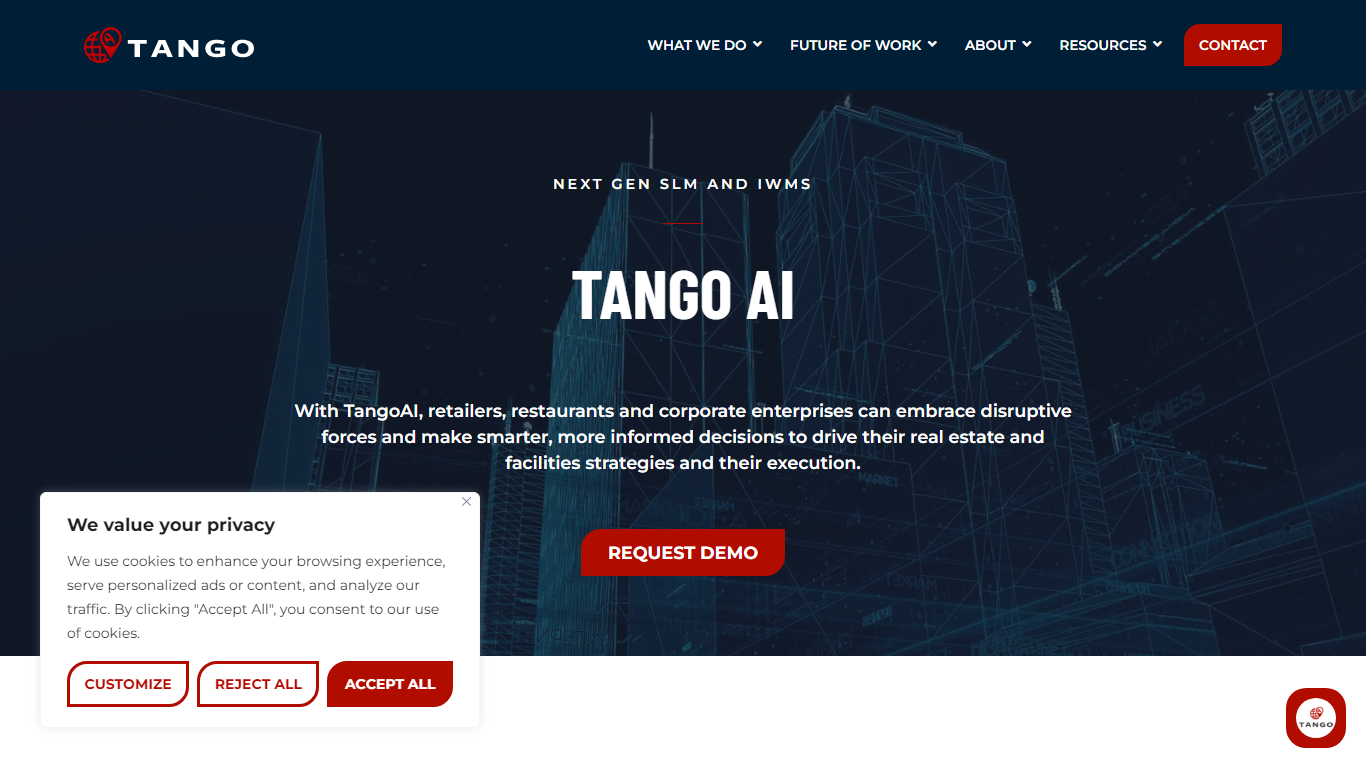 Discover the future of strategic business management with Tango AI, a robust platform that streamlines an array of organizational functions. Offering cutting-edge predictive analytics and a suite of other specialized software solutions, Tango AI focuses on enhancing the performance and efficiency across various business sectors including real estate, design and construction, lease administration, and facilities maintenance.