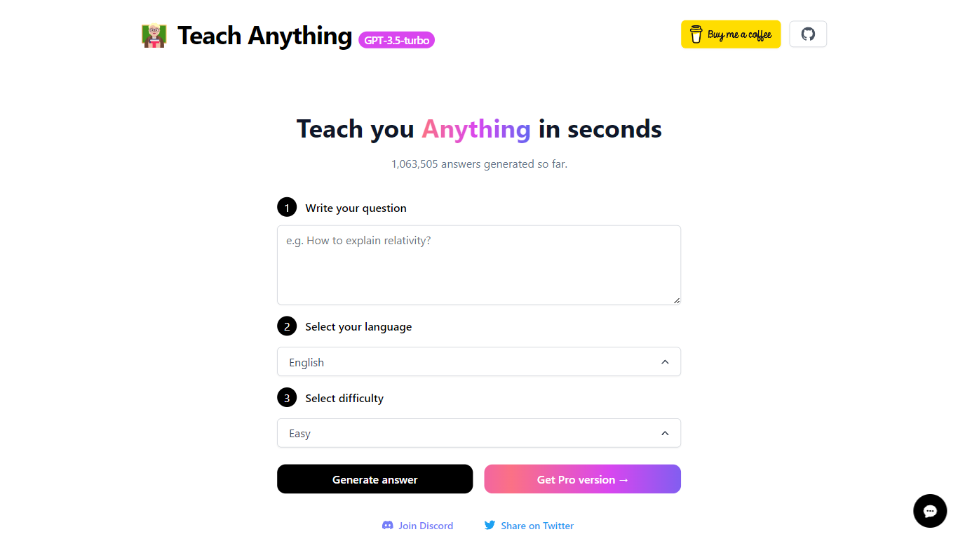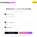 Teach Anything is a revolutionary website that harnesses the power of AI to provide instant and comprehensive learning on any topic imaginable. Whether you’re a student looking to ace your exams or a professional seeking to broaden your knowledge, Teach Anything has you covered. With our state-of-the-art AI algorithms, we can teach you anything in just seconds.